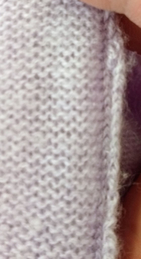 Once I have found a contender, then I have to look at its seams and construction. I have to make sure that the item is knit in pieces and seamed or knit in the round. Machine surged edges are an indication that the piece was knit, cut and seamed, meaning you will not get a continuous strand of yarn. Don’t choose these. Check the garment for obvious stains, felting, and holes, I don’t try to remove stains, I just won’t purchase that item. Holes, depending on their size and location is not a show stopper, it just means that section will have a break in the yarn. Any felted or excessive pilling areas will not be useful for recovering yarn, but if your goal is to felt cut and machine sew, then fabric felting and seam types are not as important.