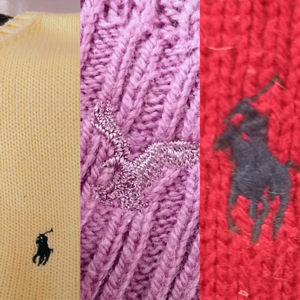 Watch out for logos embroidered on the chest or sleeve, if it’s been embroidered through, that whole section width and height, will not be recoverable. So I stay away from those.